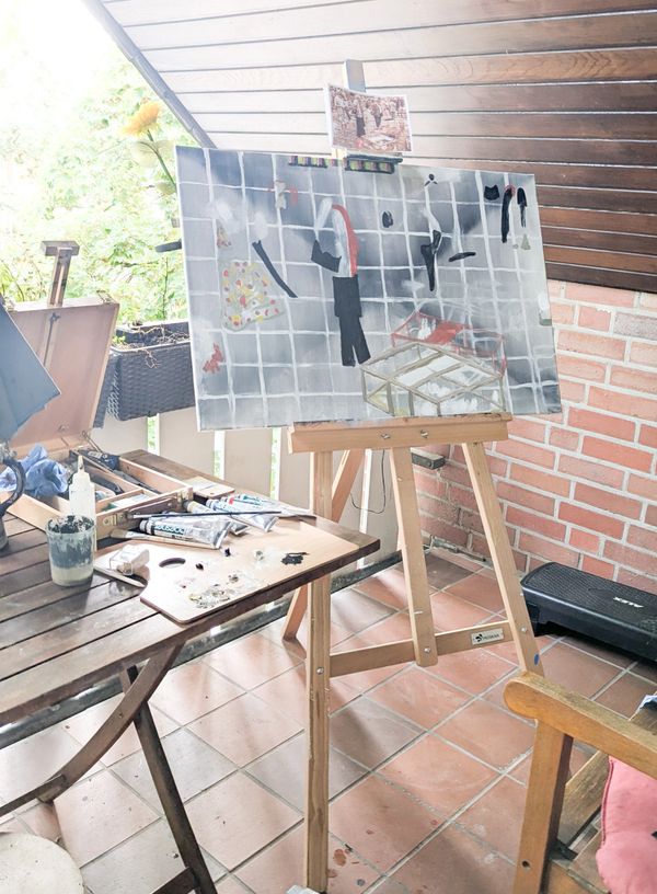 Besonders für Künstler bietet es entscheidende Vorteile: Werke können mit demselben Rahmen und installiertem Verbinder als Wechselrahmen genutzt werden. Darüber hinaus erlaubt das System, direkt am bereits montierten Keilrahmen an der Wand zu arbeiten – eine Lösung, die Atelierpraxis, Präsentation und Funktionalität auf einzigartige Weise verbindet.