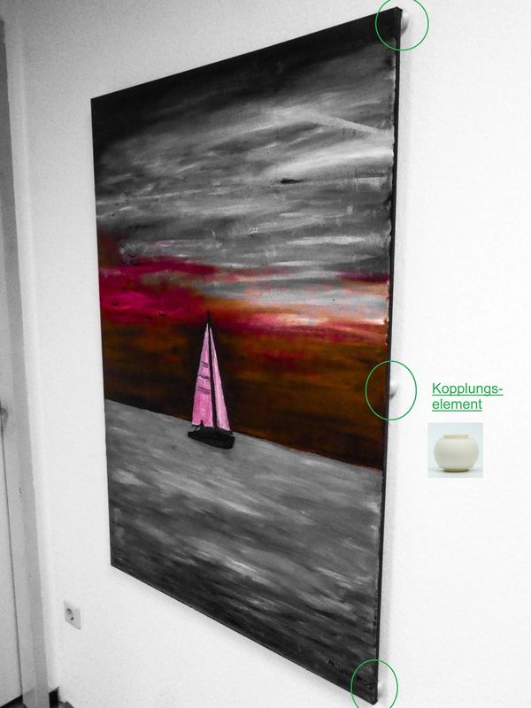Dieses System ermöglicht eine einfache, sichere und flexible Montage von Bildern an Decken, Schrägwänden und Wänden.
